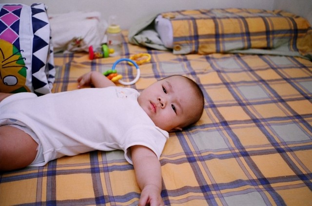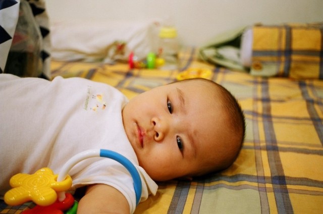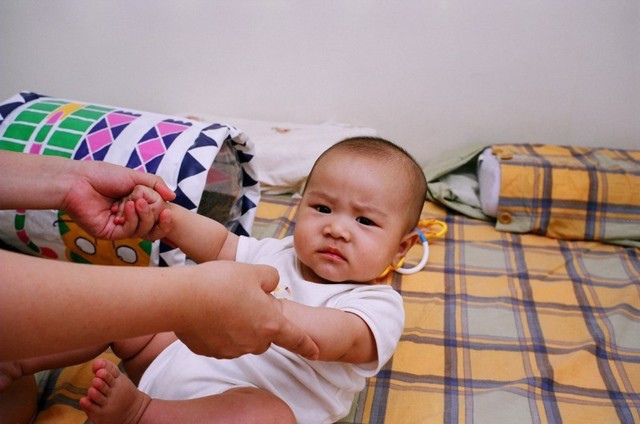 現在我快要會翻身了,我媽正在幫我做運動。