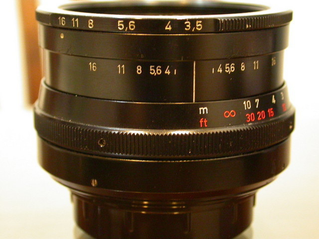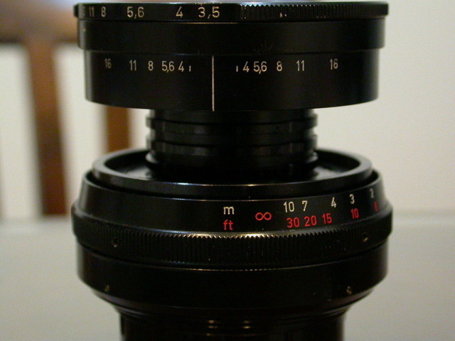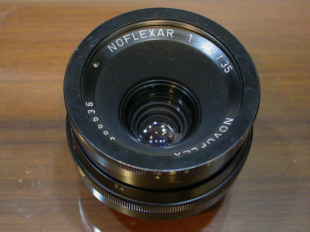 Novoflex Noflexar 35/3.5,濾鏡49mm,全手動preset式光圈,最小16,葉片10枚,最近對焦標示在未伸長前為0.4m,實際約0.25m左右,而全伸之後大約縮小到17cm。無光圈連動桿。