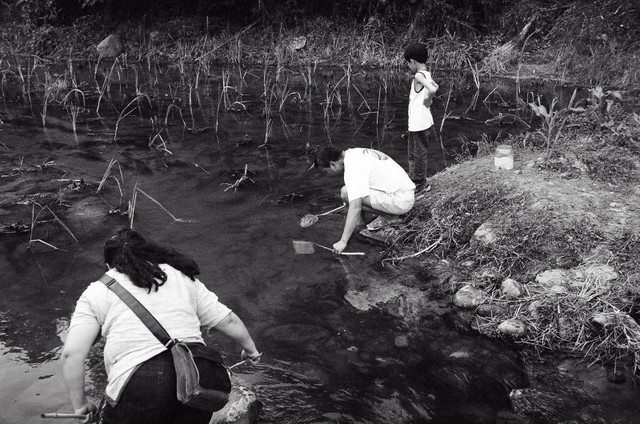 不但有許多小朋友脫了衣服在玩水,而且還真的在摸蛤蜊說,另一邊也有一家人在撈蝦子,真是好不熱鬧。來到這裡也就讓兩個小鬼也過一下水,滿足一下他們的癮。