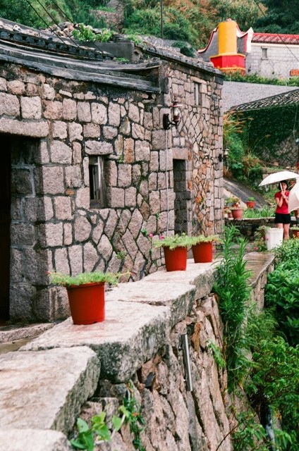 上面最後一張畫面中央的那間石頭屋稱作“義民居”,俗稱海盜屋,現在是藝文展示中心。這間石頭屋是由當年橫行閔江口一帶,以陳忠平為首的海盜組織所蓋的房子。當時所用的石材跟木材都是從對岸運過來的高級建材,砌屋的工法也是最精湛,所以跟其他的石頭屋有很明顯的不同,歷史價值很高。